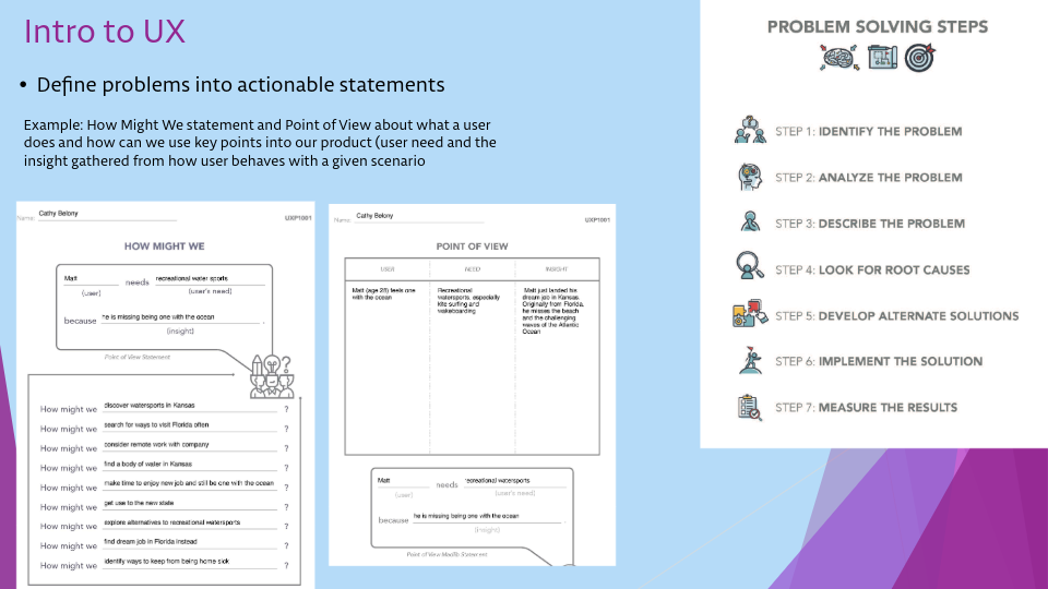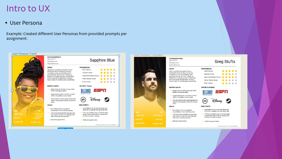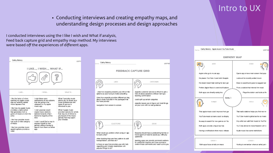 Here is a quick sample of a handful of assignments I have worked on for my User Experience Certificate. Includes different UX processes.
